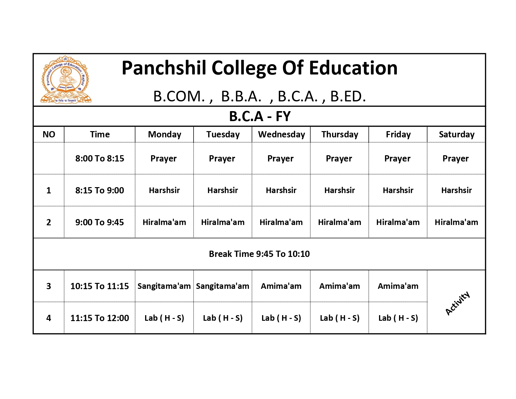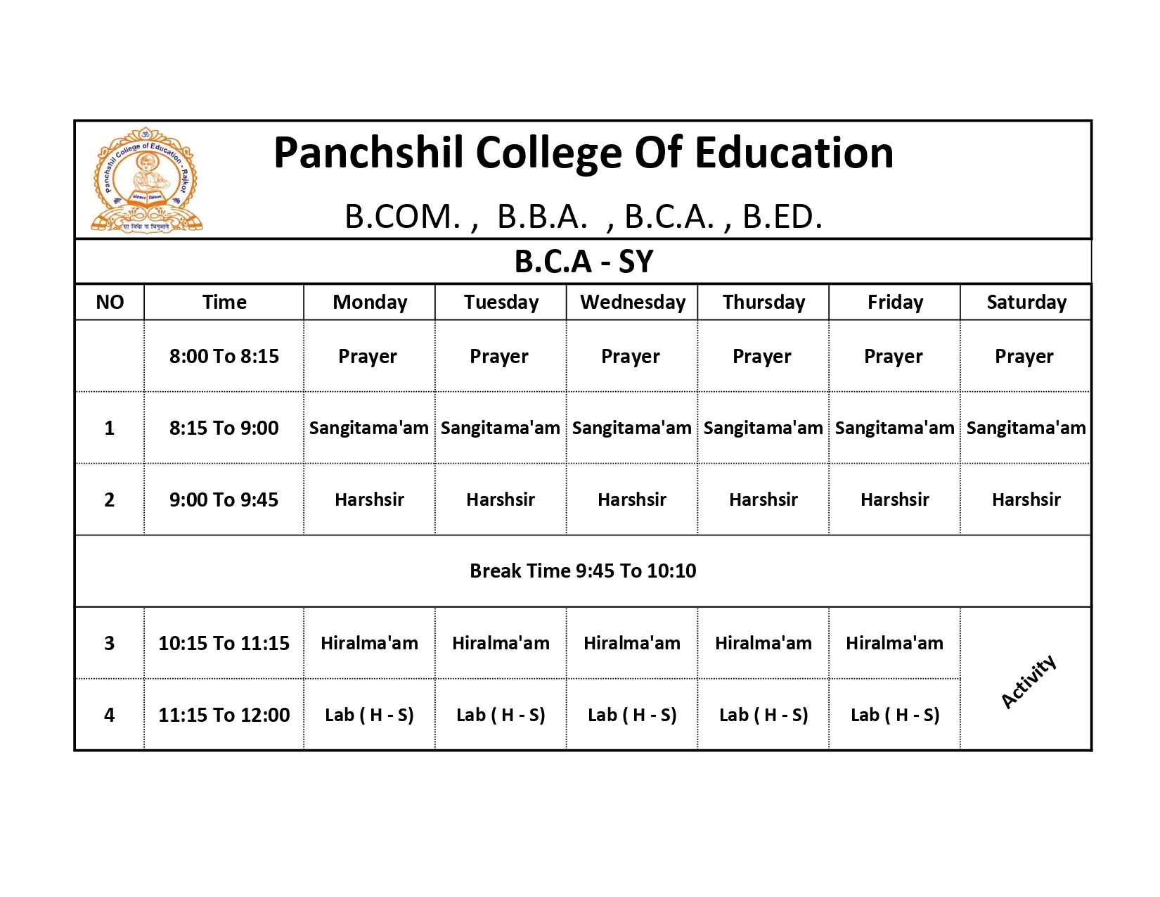 B.C.A. SY-Time Table